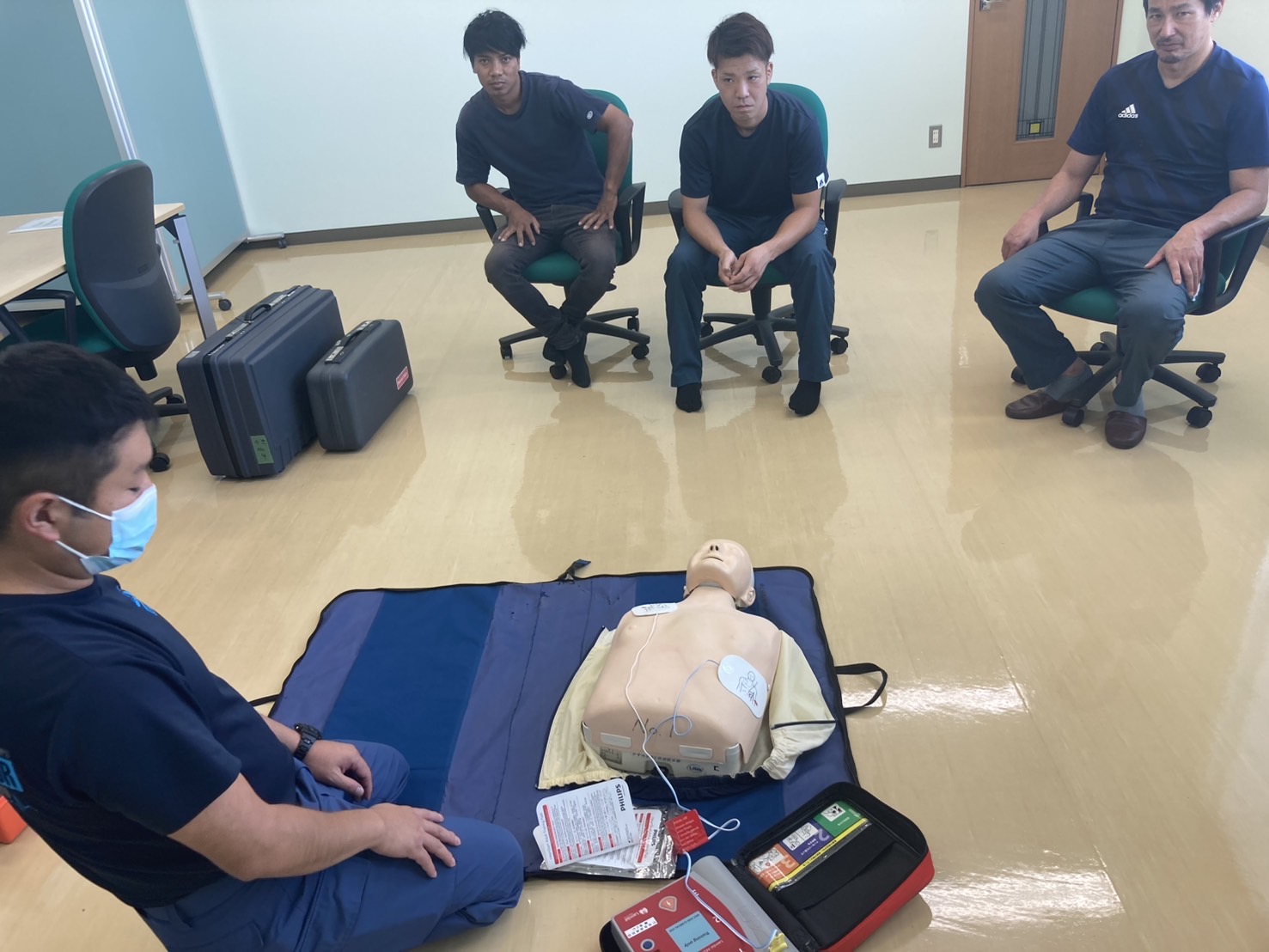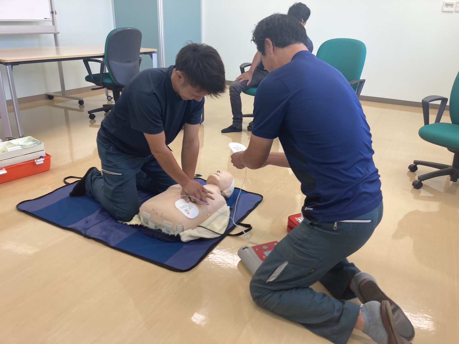 講習では、心肺蘇生法(CPR)やAEDの使い方を実際に体験しながら学びました。いざという時、人の命を救う行動がとれるかどうかは、知識と経験があるかにかかっていると学びました。